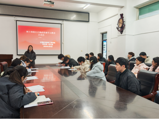 3月5日下午,我院学生第一党支部在A14-118会议室召开树立和践行正确政绩观学习教育启动会。支部全体党员、入党积极分子参会,会议由支部书记王珍珍主持。