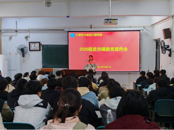 10月21日,我院在A14-128教室举办2025级反诈骗教育宣传会。