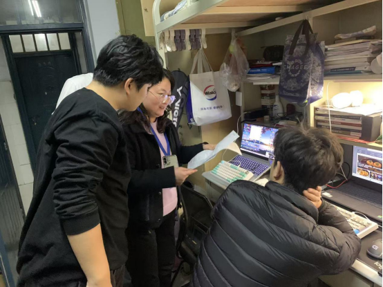 为深入贯彻落实立德树人根本任务,切实了解学生思想动态、学习生活状况,及时解决学生实际需求,近日,我院组织全体学工人员开展“下沉宿舍一线,心系学生成长”走访活动。在学院领导统一安排下,院分团委书记孟一、院学工办主任牛靖雯以及各辅导员老师分组深入学生宿舍,与同学们面对面交流、心贴心沟通,将育人关怀送到宿舍“最后一公里”。