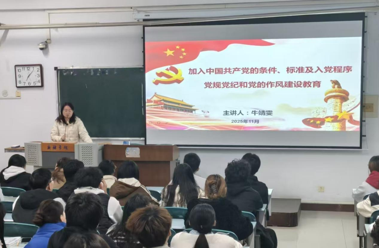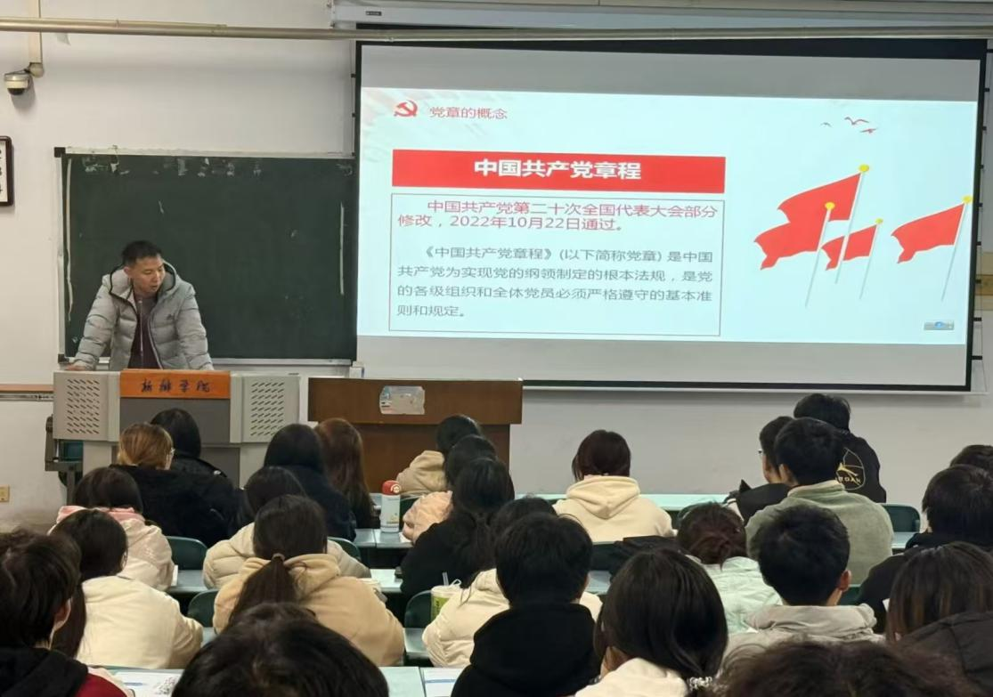 本次党课培训共六个主题,首先郭桂花以 《中国特色社会主义民族宗教理论知识》 为授课主题。她系统讲解了民族平等、团结、互助、和谐的原则与宗教信仰自由政策边界,帮助入党积极分子系统掌握中国特色社会主义民族宗教理论核心要义,强化了维护国家统一、民族团结的责任担当。 接着,黄中杰主讲《中国共产党章程》(2022 年版),带领学员逐章领会党章核心要义,明确党员的权利与义务。王珍珍围绕《党的辉煌历程与基本经验》(含党的统一战线知识)授课,通过回顾党的奋斗历程,让学员深刻感悟百年大党的历史智慧与实践经验。谭敬豪主讲《习近平新时代中国特色社会主义思想及党的二十大精神和二十届三中全会精神》,带领学员深入解读习近平新时代中国特色社会主义思想及党的二十大和二十届二中、三中、四中全会精神,把握新时代党的理论创新成果。然后,牛靖雯以《加入中国共产党的条件、标准及入党程序;党规党纪和党的作风建设教育》为主题展开详细讲解,明确入党条件与规范程序,深析党规党纪要求及作风建设要义,引导学生树立正确的入党动机,以自身行动积极践行一名合格党员的标准。
