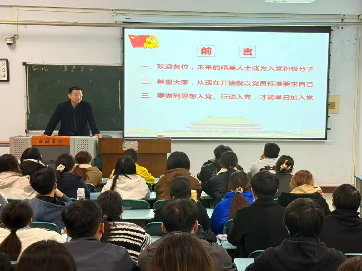为了帮助入党积极分子端正入党动机、了解党的性质宗旨和纪律要求,同时提升思想觉悟与政治素养,夯实党的理论基础、明确入党初心与责任,深入学习贯彻习近平新时代中国特色社会主义思想。我院于2025年11月5日至11月12日在A14-127教室开展了第三十六期入党积极分子党课培训。本次党课培训系列活动邀请计算机与信息工程学院党委书记李文波、副书记郭桂花、组织员牛靖雯以及学生党支部书记黄中杰、王珍珍、谭敬豪进行主讲,第三十六期入党积极分子参加培训。