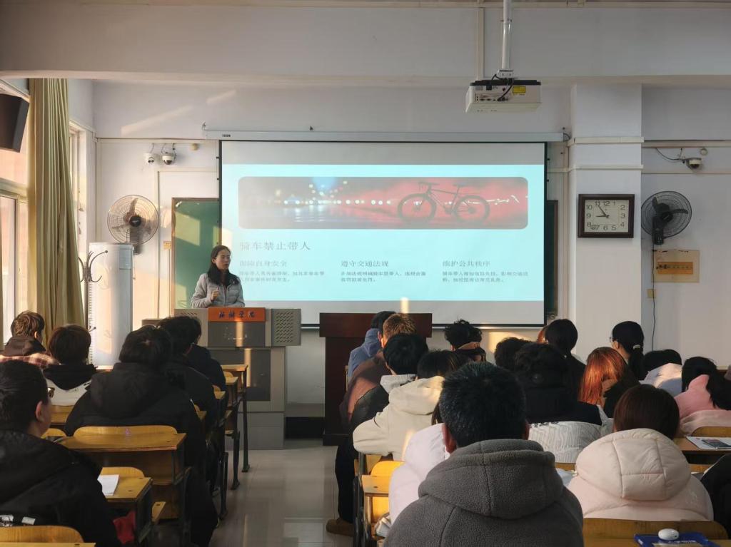 为进一步确保学生的安全与健康,提升大学生的安全出行意识,2025年12月17日,计算机与信息工程学院2024级数据科学与大数据技术1班在A14-525教室举办了“文明出行始于心,安全相伴践于行”主题班会。辅导员谭敬豪老师主持本次班会,2024级数据科学与大数据技术1班全体学生参加。